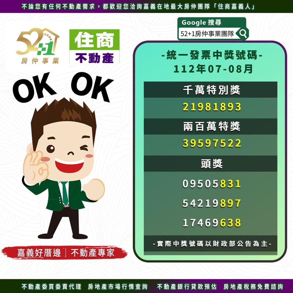 【住商嘉義52+1房仲事業團隊】祝您中大獎唷!