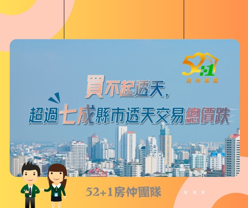 【52+1房產新資訊 ~買不起透天,超過七成縣市透天交易總價跌❓】