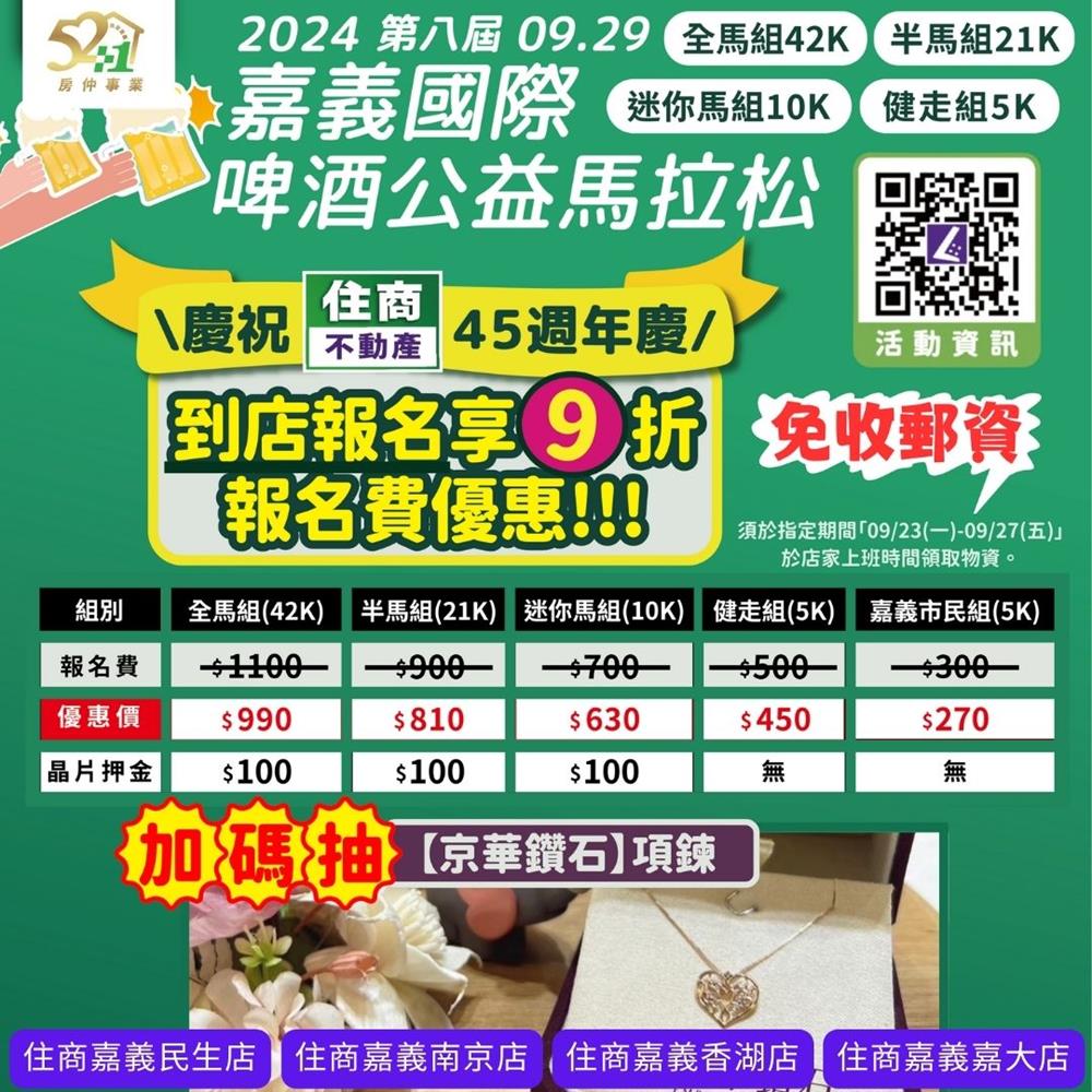 響應公益馬拉松【住商嘉義人】邀請您來參加 2024第八屆#嘉義國際啤酒全碼組或半碼組公益馬拉松🏃♀️🍻日期就在 2024年9月29日 🚨最後報名🚨【‼️又加碼好康啦‼️】🍺立即搶名額:報名網址 https://bit.ly/3QdRUnc▎ 𝟒/𝟏𝟓-𝟓/𝟏𝟓期間報名並完成繳費▎ 每人加碼送➡️1瓶精選啤酒!🍺(未滿18歲則贈飲料一瓶)還有還有,凡於5/15前報名並繳費▎ 加碼再抽‼️ ❤️樂憶皇家度假酒店 免費住宿券(市價$6800)