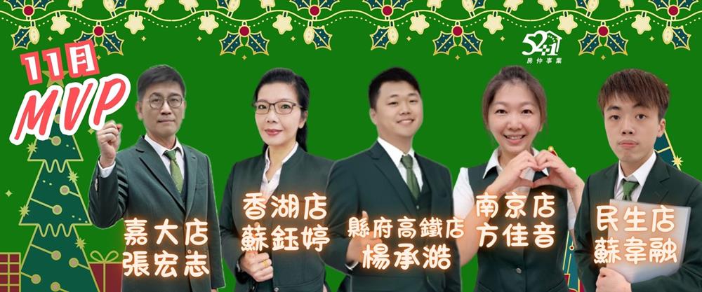 11月份我們 52+1 房仲團隊誕生 5 位 MVP,
