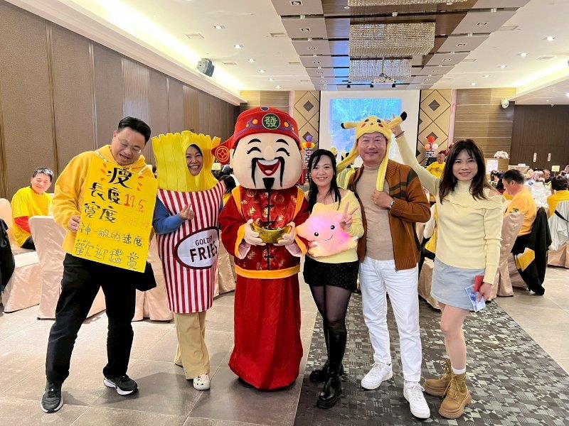 從一進場就覺得「哇~也太用心了吧!」,大家用心裝扮在主題服裝,整個會場閃閃發亮,氣氛超有年味又很有質感。滿場的金色、黃色閃到不行()。邊吃美食邊聊天,那種放鬆又熱鬧的感覺,真的只有尾牙才有。